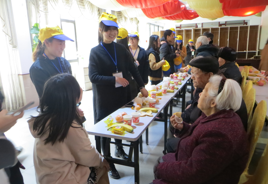 两小时的志愿服务时间很快就过去了,大家合影留念,与老人们一一告别。通过本次活动,既给老人们送去了温暖,丰富了老人们的生活,弘扬了“敬老、爱老”的中华传统美德,也培养了志愿者们的爱心,提高了服务水平。希望在今后的学习和生活中能为更多有需要的人送去我们的爱心。(李明)