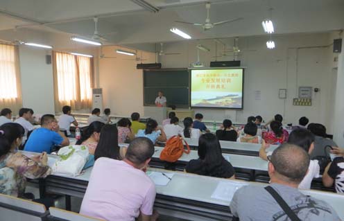 7月8日下午,浙江省高中政治、历史教师专业发展培训开班典礼在公司临海校区举行。思政部党总支书记杜才平致辞,思政部副主任林伟布置培训具体事项,来自台州各县市区及杭州、宁波、绍兴、温州、金华等地的70多名学员参加开班典礼。