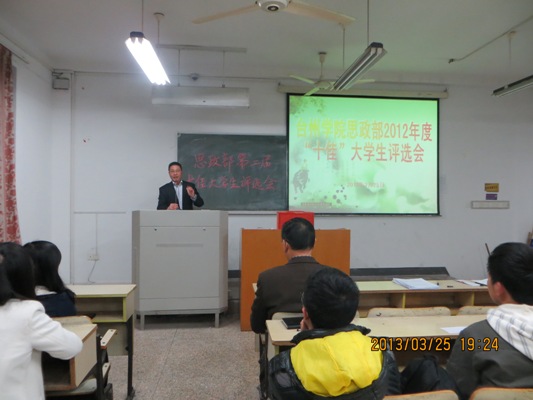 3月25日18时,思政部在3201教室举办思政部2012年度十佳老员工评选会。思政部党总支书记杜才平、副主任林伟及学院相关老师出席评选会,各班级员工代表及团学会成员组成大众评审团参加评比活动。