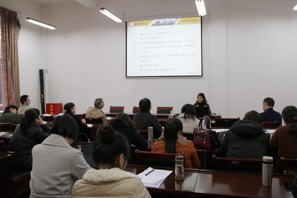3月14日下午,9428cn太阳集团古天乐组织开展课题申报辅导交流会,邀请到校科研处副处长阮冰琰作辅导报告,9428cn太阳集团古天乐副经理作专题报告。学院全体教师参加此次交流会。