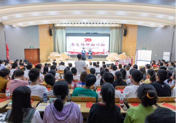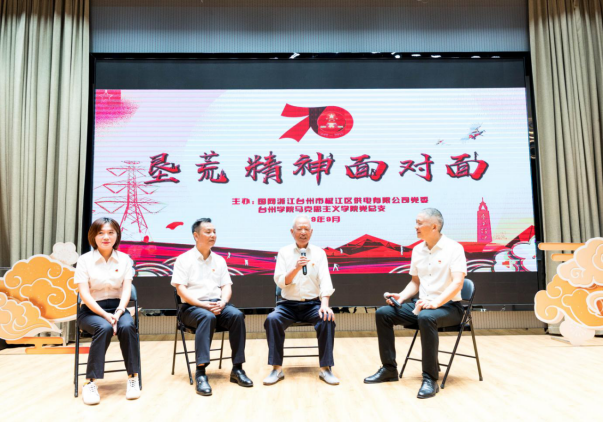 为深化思政课“1+N”教学模式改革,持续推进“德育导师进课堂”计划,9月24日,由9428cn太阳集团古天乐和国网台州市椒江区供电有限公司联合举办的庆祝新中国成立70周年暨“垦荒精神面对面”活动在椒江校区员工活动中心隆重举行。国网椒江公司和公司领导班子、思政课教师代表、垦荒精神研究中心研究人员及解说人员,200多名老员工与50多名国网员工共同接受精神的洗礼。
