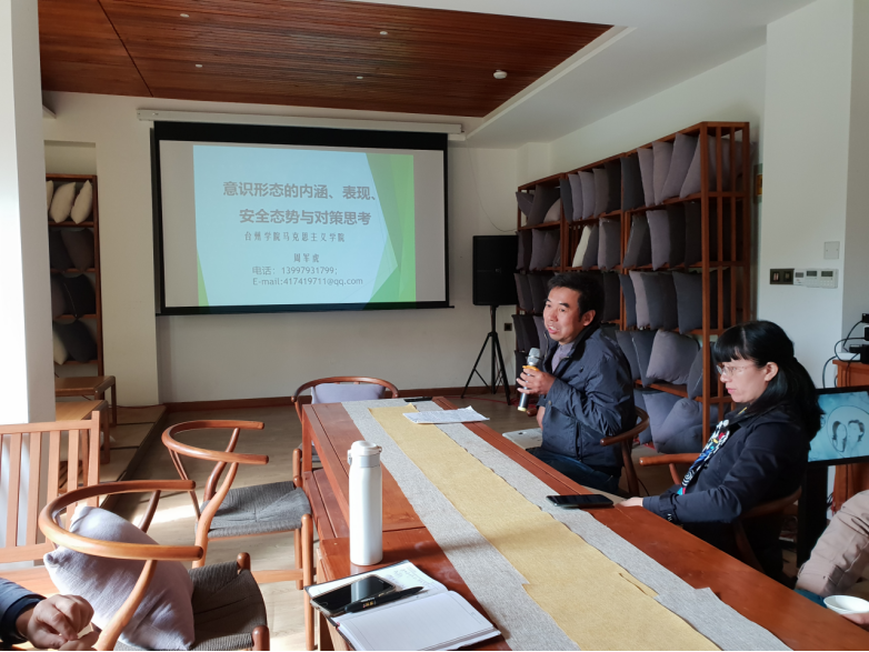 在教学展示环节,周东威、周军虎、高伟军三位博士分别作专题教学汇报。三位老师精心选题、认真准备、充分展现了扎实的知识功底和个人的教学风采,学院领导对三位老师的课件设计、内容展现和授课技巧等进行了点评,指出需要改进和反思的问题,就如何讲好思政课,推进思政课入耳入脑入心提出了意见和建议。与会老师与主讲老师展开细致的探讨交流,获得了有益的启发。