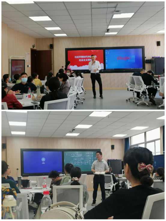 四位老师分别主讲了“正确认识我国社会主要矛盾的变化”、“创造有意义的人生”、“真理与价值”、“党在过渡时期总路线及其实施”等专题,教学内容全面有机地融入了习近平新时代中国特色社会主义思想以及党史内容,理论联系实际,案例生动,内容详实,层层递进,以专业的理论基础、新颖的教学设计、扎实的教学基本功深深吸引了在座师生的注意力。