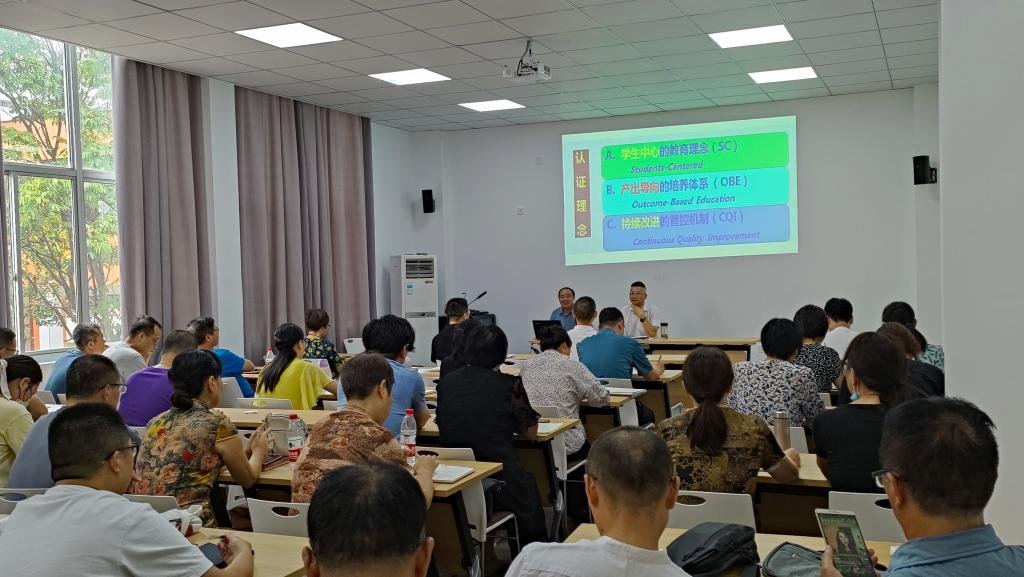 李跃华围绕认证理念、认证逻辑、产出导向的课程体系、课程与教学、基于OBE的课程大纲、深度访谈等方面进行了解读。他说要深刻把握“员工中心、产出导向、持续改进”的理念,对照认证标准加强建设,将认证要求贯彻落实到课程教学、团队队伍、评价考核、经费投入等各项工作,并明确了专业教师需要做的事情。