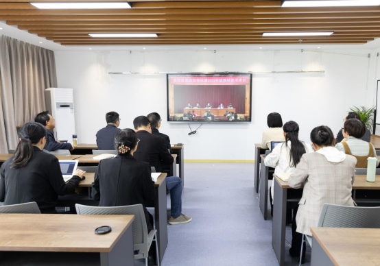 4月27日上午,全国高校思政课2023年版教材使用培训会开幕。教育部党组成员、副部长王嘉毅、中宣部理论局副局长陈启清出席开幕式并讲话。公司在椒江校区和临海校区分设直播分会场。公司党委委员、宣传部部长金松出席开班式,马学院领导班子和专任教师在分会场认真聆听了开班式讲话和直播学习。