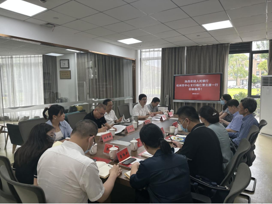 6月1日,人民银行杭州中心支行党委委员、工会主席杨仁荣一行来校开展调研,台州市支行行长喻晓岚等陪同,公司党委委员、副董事长胡韶光出席座谈,公司党总支书记盛跃明、学工部副部长王林军参加会议。