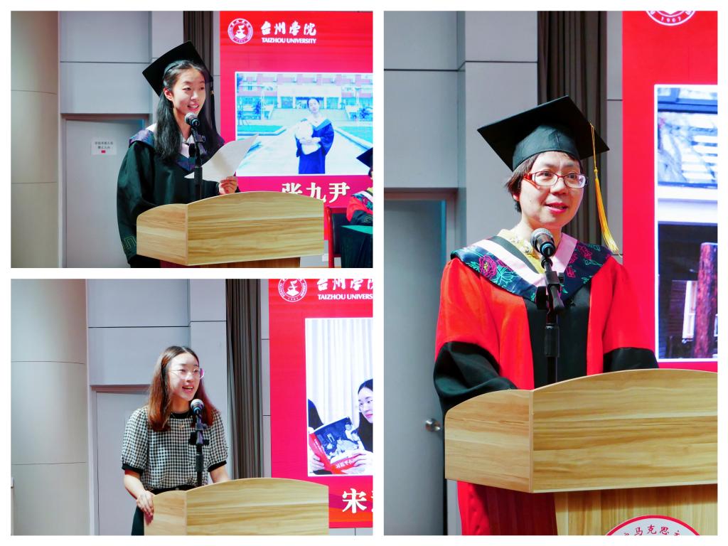 毕业生代表19思政卓越班张九尹回忆了精彩纷呈的大学学习生活,并代表毕业生向学校表示感谢。19届思政专业毕业生宋慧琳作为员工代表发言,她勉励毕业生们要保持定力、坚定自信、勤恳做事,常怀感恩之心,不忘回馈母校。教师代表曾夏凤勉励毕业生们要永远坚定追求,永远相信成长,学院的名师摇篮会一直为同学们的职业技能保驾护航。