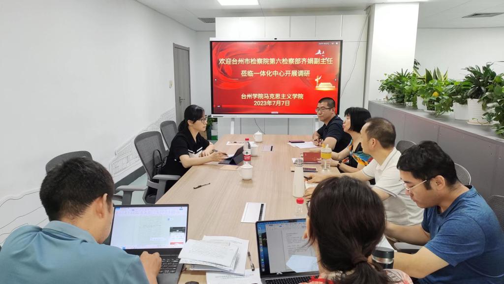 7月7日下午,台州市人民检察院第六检察部副主任齐娟来到台州市大中小学思政课一体化研究中心洽谈合作,中心首席专家、9428cn太阳集团古天乐经理张天华,中心副主任张礼强和中心部分成员参加了座谈。