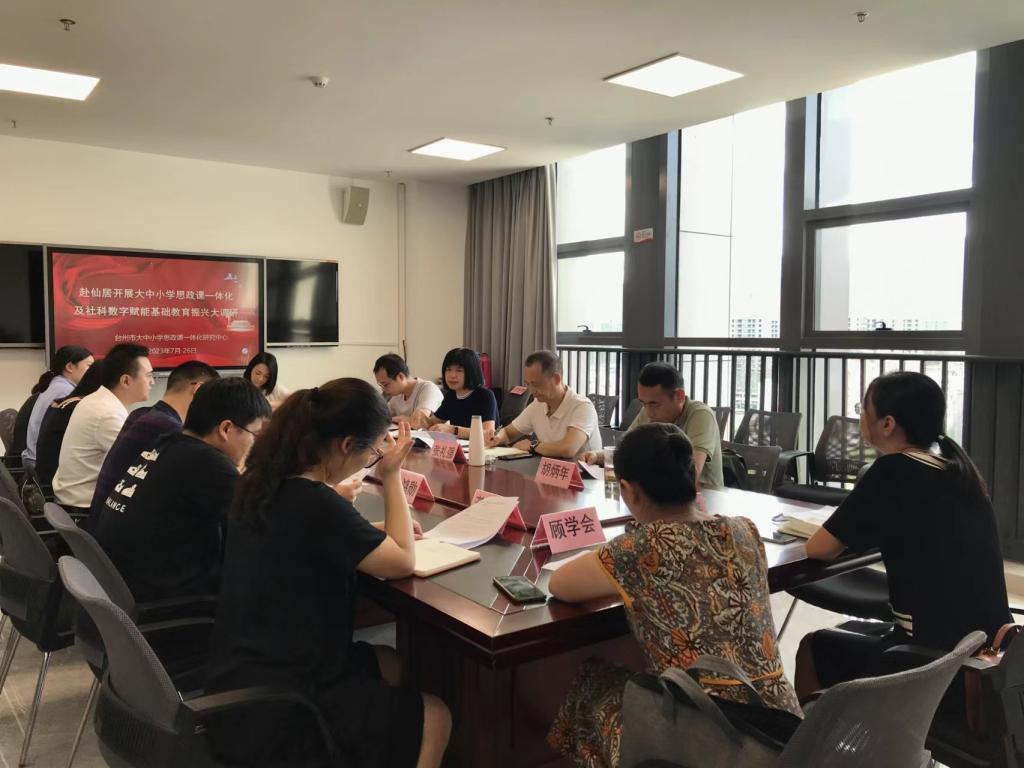 7月26日下午,研究中心团队成员与仙居县委宣传部常务副部长吴凯、县教育局李江军、县精神文明办郑佳颖、县委宣传部何兴、县教育局蒋益青、县司法局张鸿勋、县公安局吴雪芳、思政课教研员顾学会、仙居中学分管董事长张灵侠、下各二中分管董事长张燕翔、仙居一小分管董事长陈薇薇等相关人员进行了座谈。