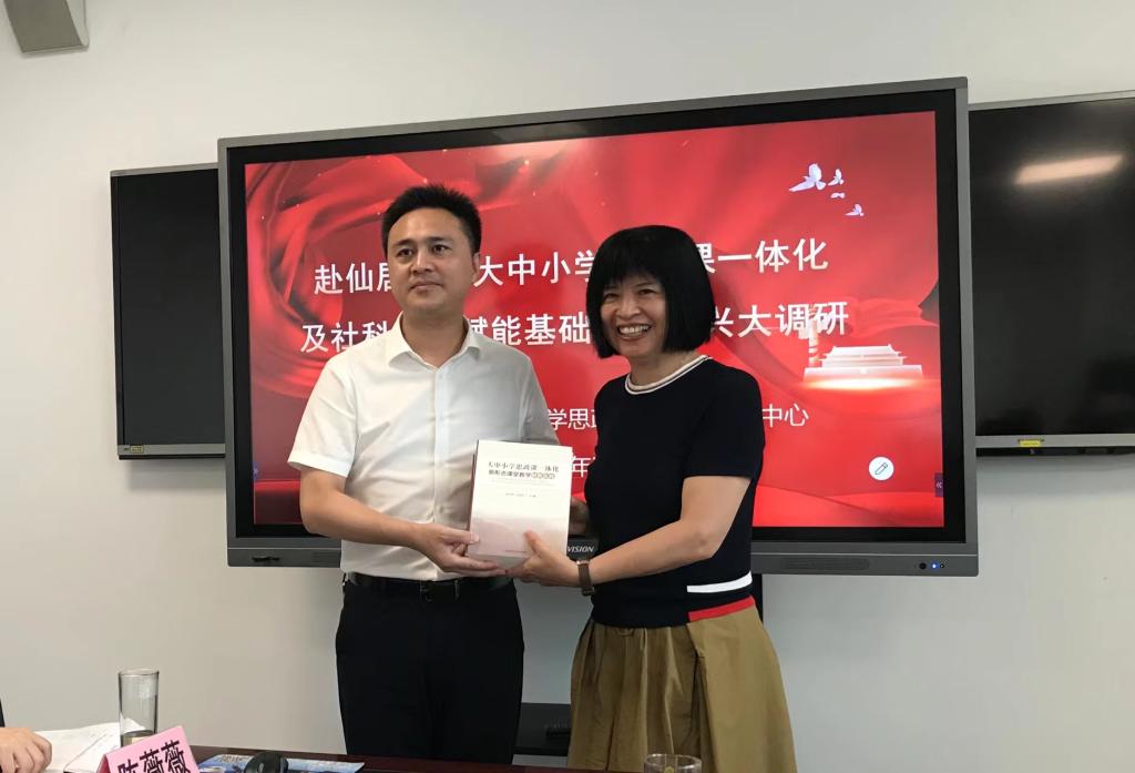座谈会交流结束后,现场还举行了简短而又暖心的赠书仪式。研究中心将《大中小学思政课一体化新形态课堂教学创新实践》《大中小学思政课同课异构一体化教学设计样例库》等相关研究成果赠予仙居县委宣传部、县教育局、中小学思政课教研员和一线思政课教师代表,此次赠书活动营造出研究中心和仙居各部门共同将大中小员工培养成德智体美劳全面发展的社会主义建设者和接班人的良好氛围。