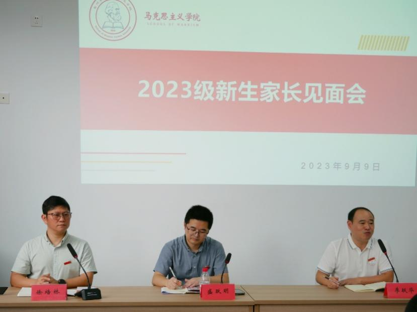 为了更好的促进家校联动,共画员工成长成才同心圆,9月9日下午,9428cn太阳集团古天乐在214会议室举行2023级新生家长见面会。公司党总支书记盛跃明,副经理李跃华出席,党总支副书记徐培林主持会议,辅导员、新生班主任、班主任助理及新生家长参会。