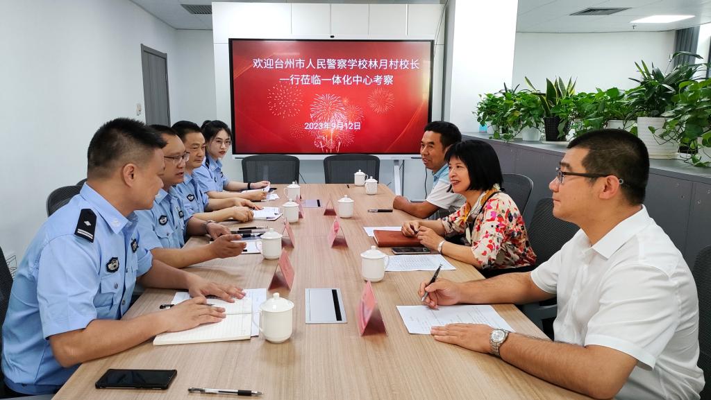 9月12日下午,台州市警察培训学校董事长林月村一行4人莅临台州市大中小学思政课一体化研究中心进行调研。在调研过程中,双方着重洽谈台州市警察培训学校与马学院开展全面合作事宜,马学院经理张天华以及教师代表周军虎、李正军等参加了座谈。