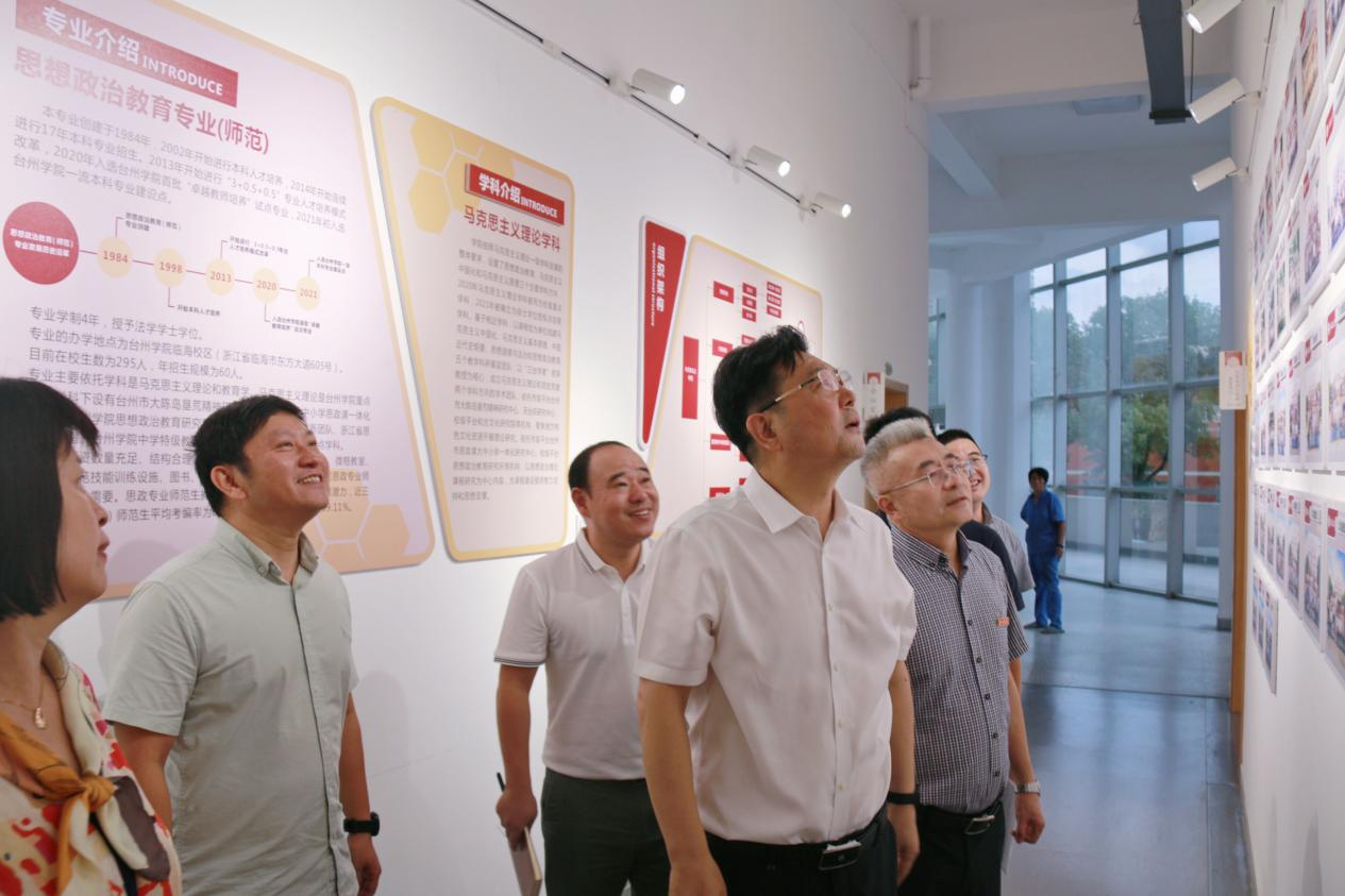 调研会前,崔凤军一行走访参观了临海校区大陈岛垦荒精神教育中心、学院文化墙,慰问了行政办公人员,详细了解了学院办公和教学用房的情况。