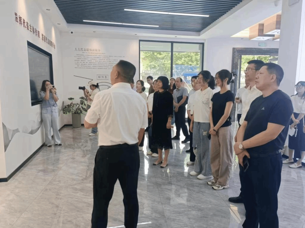 活动开始之前,颜邦林主任亲切地为大家介绍此次活动的主题,旨在向青年员工展示台州市推进全过程人民民主的创新成果,零距离感受基层全过程人民民主的生动实践和鲜活案例。随后参观团依次走访了大洋街道人大代表联络站和古城街道人大代表联络站。在这过程中,讲解员依次说明联络站的信息和各个板块的作用,详细介绍了基层单元数字平台如何将民情民意分层收集、分类办理、及时反馈、跟踪评估,形成一个完善的闭环处理。还介绍了每周固定的“人大代表联络日”活动以及“共享法庭”“共联检察”等,听取居民群众的烦恼,为老百姓排忧解难。