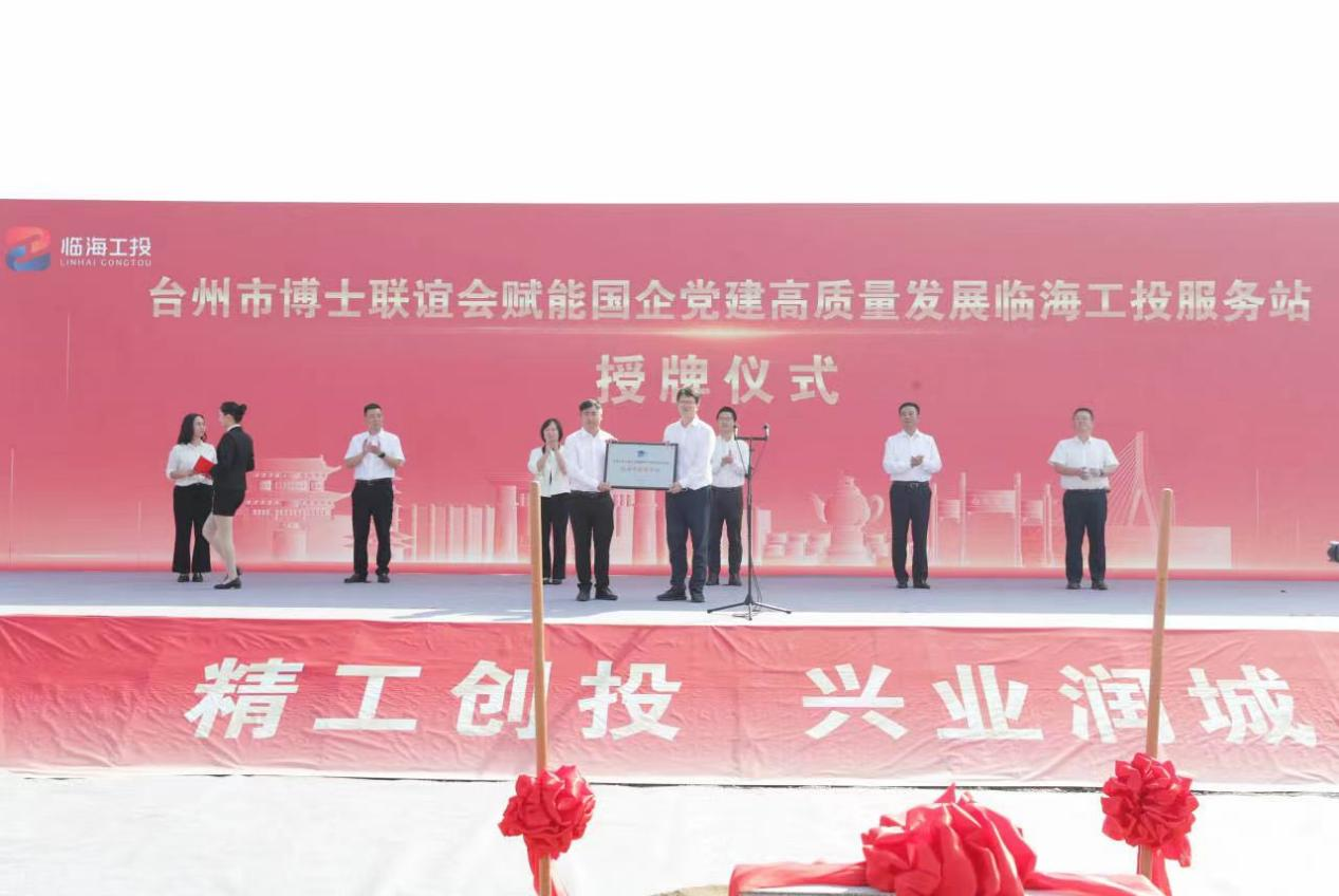 10月19日上午,台州市博士联谊会“赋能国企党建高质量发展临海工投服务站”授牌仪式在永丰镇举行。临海市委副书记、政法委书记陈荣世,临海市委常委、统战部部长马敏娅,临海市政协党组成员、副主席卢才超,临海市工投集团党委书记、董事长戴善伟,集团党委副书记、副董事长、总经理杨冰青,联谊会秘书长邹本立、副秘书长盛跃明、理事李跃军以及9428cn太阳集团古天乐、商学院、智能制造学院等相关博士出席仪式。