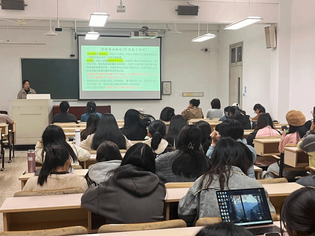 陈书雁学姐以准备、抉择、反思三个部分进行展开,通过自身经验向大家提供了多种提升自我、认知自我的方法进行考编备考。林佳梦学姐为同学们带来大量备考相关资料,为考编的前期准备、考试阶段、完成后的选择提供参考,强调关注信息的重要性。
