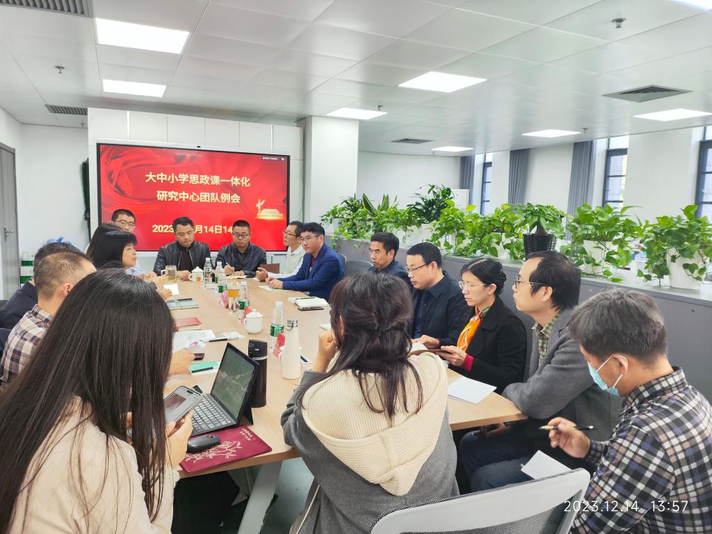 12月14日下午,公司党委委员、宣传部部长金松赴台州市大中小学思政课一体化研究中心调研。台州市大中小学思政课一体化研究中心首席专家、9428cn太阳集团古天乐经理张天华、研究中心副主任张礼强、研究中心全体成员参与调研交流。张天华主持了座谈会。