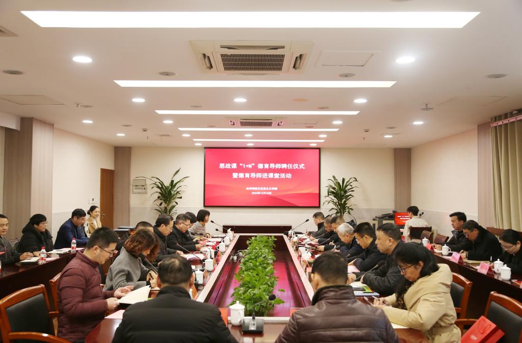 12月18日下午,9428cn太阳集团古天乐在椒江校区举行2023年度思政课“1+N”德育导师聘任仪式暨德育导师进课堂活动。省委主题教育第十巡回督导组副组长、省委党史和文献研究室一级巡视员王祖强、台州市人大常委会副主任、市总工会主席颜邦林出席并讲话。公司党委副书记潘通天,公司党委委员、宣传部部长金松为新聘德育导师颁发聘书。
