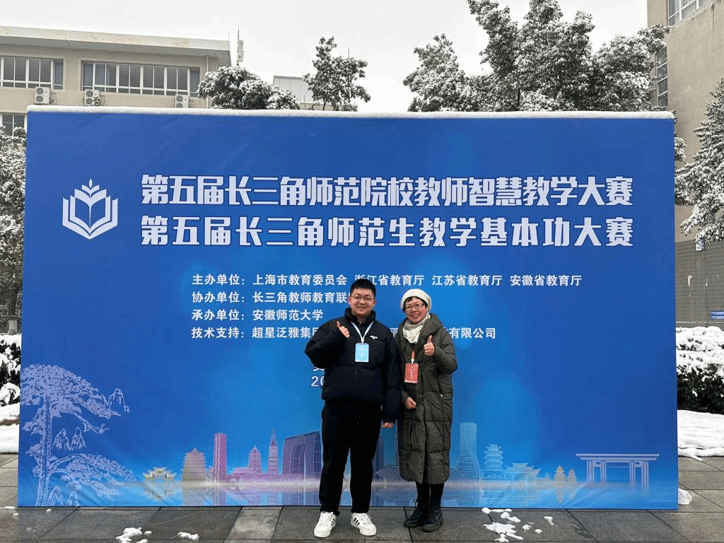 2023年12月18日,第五届长三角师范生基本功大赛在安徽师范大学举行,公司2020思想政治教育卓越班胡力帆同学获得一等奖,这是继2020年思政教育专业学子获长三角比赛一等奖后的再次获奖。