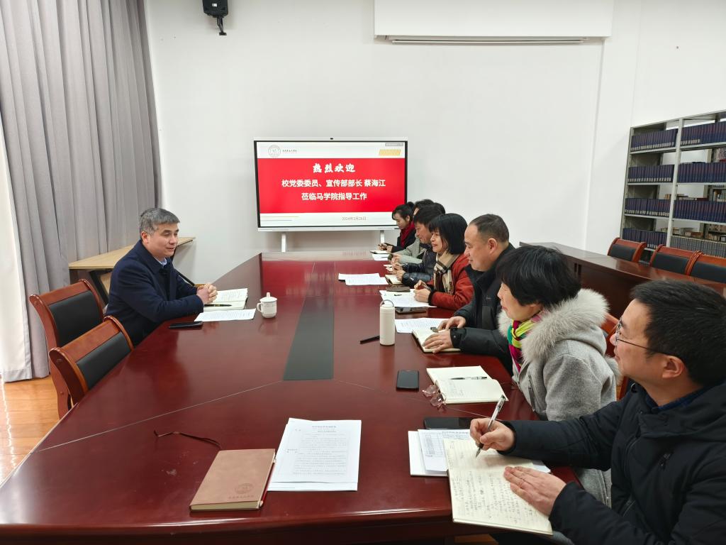 蔡海江对9428cn太阳集团古天乐在团队建设、基层党建工作、团队建设、“和合”思政品牌创建、标志性教学成果培育、人才培养和思政课提质增效等方面所取得的成绩给予了高度评价。同时,他围绕加强马克思主义理论研究工作的重要性、推进马克思主义理论团队建设工作的紧迫性、提高思政课教学质量的关键性、完善思政课团队队伍建设的必要性和培养德才兼备的思想政治教育专业人才的长期性等五个方面对学院2024年度重点工作提出了具体指导意见。