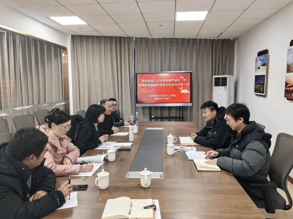 2月28日下午,人文社科处高平处长、屈燕飞副处长一行到马学院莅临指导2024年国家社科基金申报工作,学院经理张天华、副经理李跃华、学科办主任王在亮,以及部分申报2024年国家社科基金教师代表参加交流。