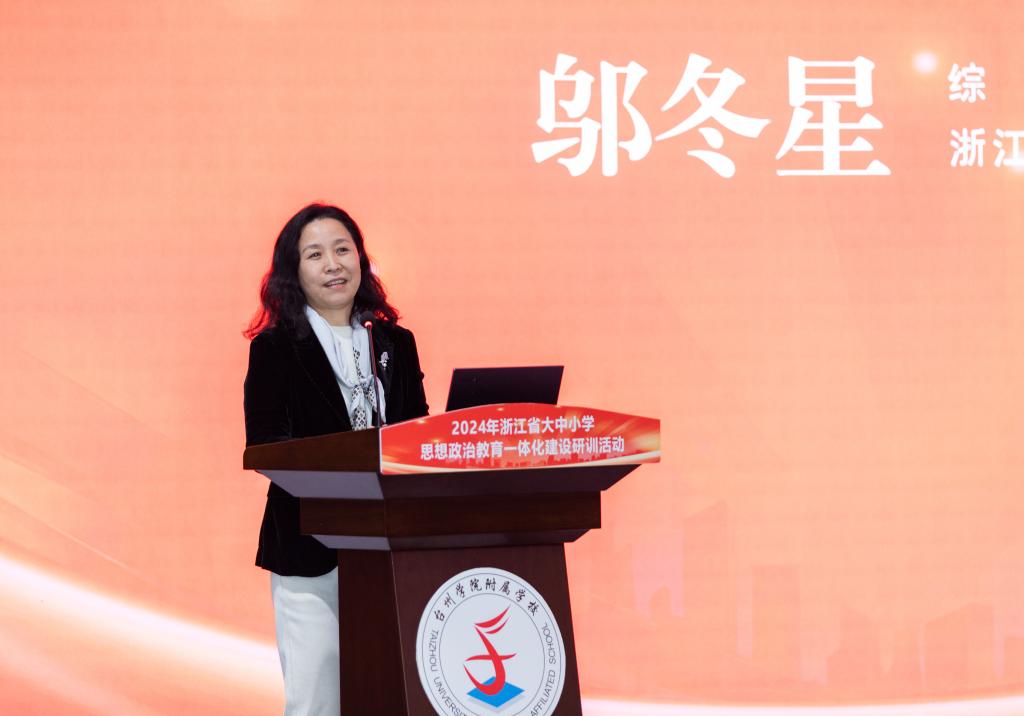 ▲李荆作《大中小学思政课一体化建设的浙江探索》的专家报告