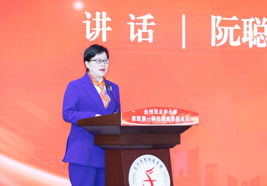 ▲台州市教育局党组书记、局长阮聪颖在讲话