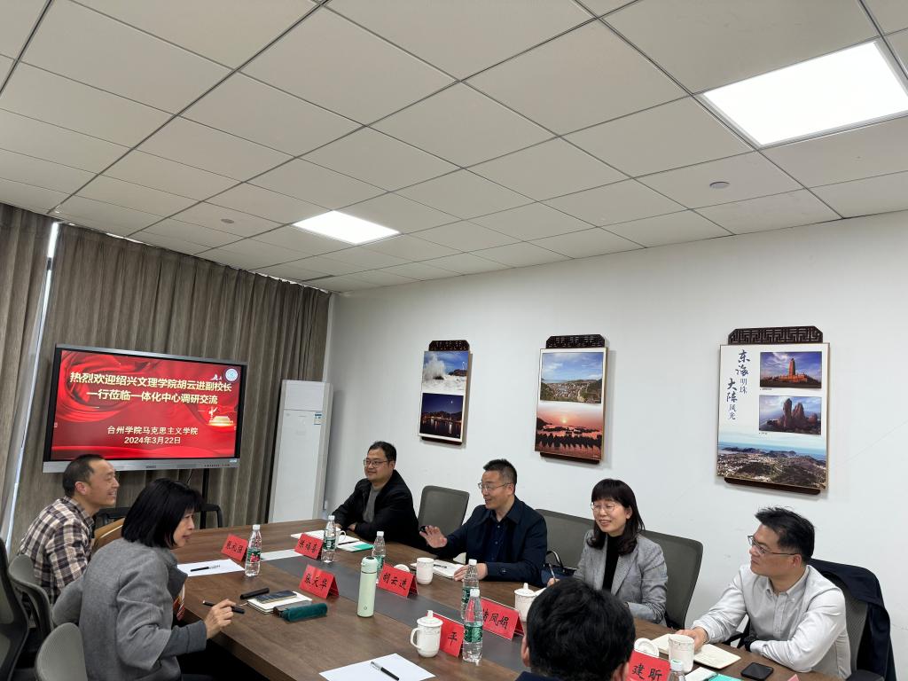 3月22日下午,绍兴文理学院副董事长胡云进一行四人来到公司调研、考察、交流学科基地建设工作,集团社科处高平处长陪同考察,公司经理张天华教授及一体化中心研究中心团队成员王在亮、李正军、吕漫等参加座谈。