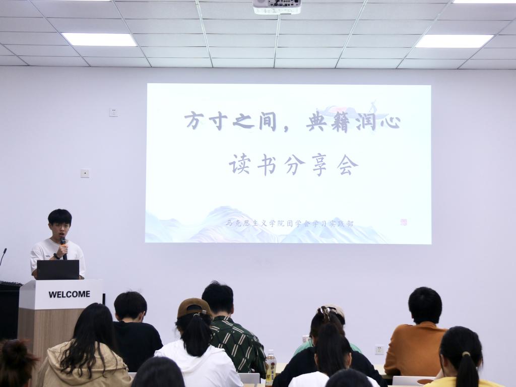 人间最美四月天,正是青春读书时。为进一步加强学院学风建设,营造良好学习氛围,提升员工知识水平,传播多读书、读好书的理念,在交流分享中激发员工对读书的热情,体现马院学子互帮互助、交流互鉴的良好学风,4月29日学院举办了“方寸之间,典籍润心”读书分享会。学院分团委书记李彦铭应邀出席此次活动。