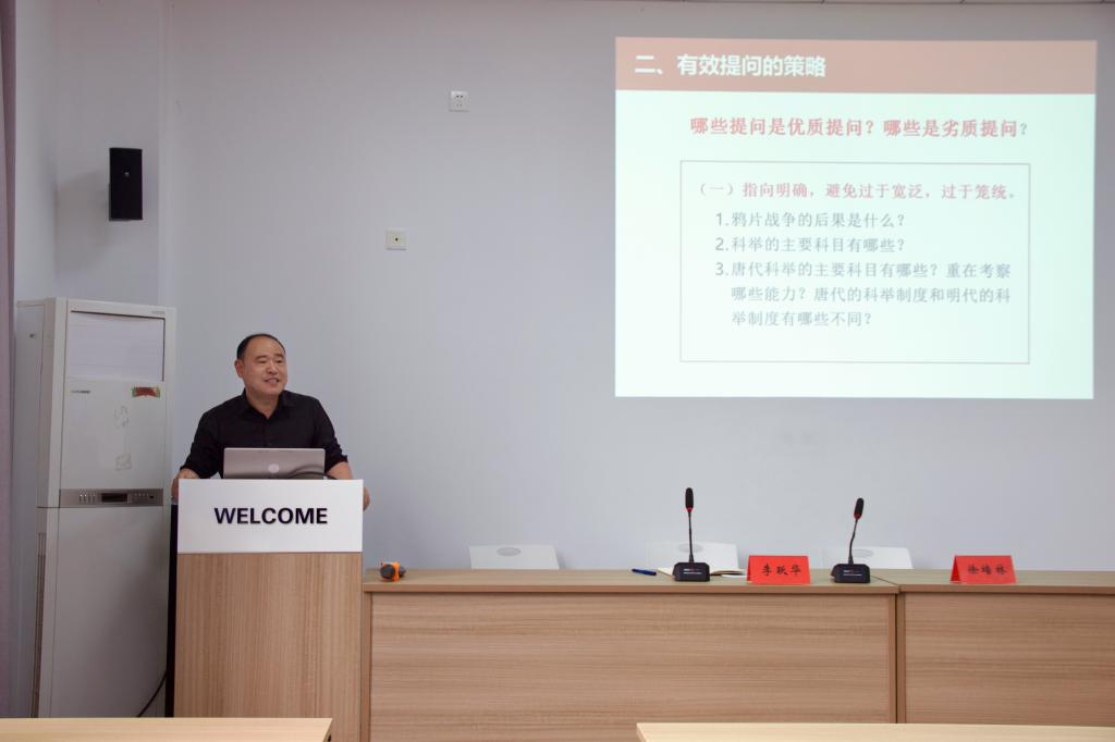 李跃华在论坛中指出,教学提问的主要作用在于引起注意,激发兴趣;发展思维,促进员工参与教学;收获信息反馈,开展教学反思。优质教学提问能够有效激活课堂,优质教学提问应该指向明确,避免过于宽泛,过于笼统;具有趣味性,能激起员工兴趣,避免索然无味,毫无波澜;难度适中,能激发进阶,避免过浅、过难、过平;具有开放性,激发思维扩散;立意高远,聚焦核心素养,避免泛娱乐化。教师们围绕当前时政热点“胖猫事件”、俄乌危机等如何开展有效课堂提问进行了探讨交流。