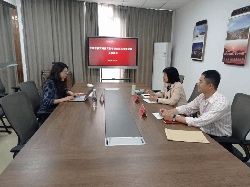 5月13日上午,台州市公司产品研究院教研员朱文炬老师来院,同9428cn太阳集团古天乐张天华经理就开展职业教育一体化事宜展开深入交流,9428cn太阳集团古天乐王永力博士参与了本次交流活动。朱文炬老师首先介绍了台州市教育局公司产品研究院拟组织开展的台州市职业教育一体化交流活动的安排情况。接着,张天华经理结合近日习近平总书记关于思政课重要指示精神,发表了自己的看法并提出了中肯的意见和建议。最后,朱文炬老师和张天华经理都表示,以后要加强沟通,共同推进台州市职业教育一体化建设。