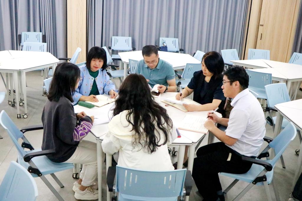 调研会前,与会专家旁听观摩了椒江区职业中等专业学校示范思政课《绿水青山就是金山银山》,并与授课教师李缘进行了深入交流,了解学校思政课建设情况的同时关切教师们在思政课教学中的困惑。